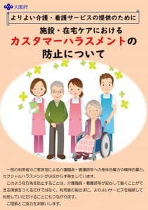当社では、職員の安全を確保し、入居者様及びご家族様と職員の良好な関係を築くために、厚生労働省による「カスタマーハラスメント対策マニュアル」に基づき、指針を策定しています。