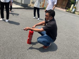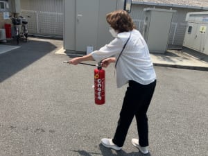 ◆水消火器を使用した初期消火の実技体験