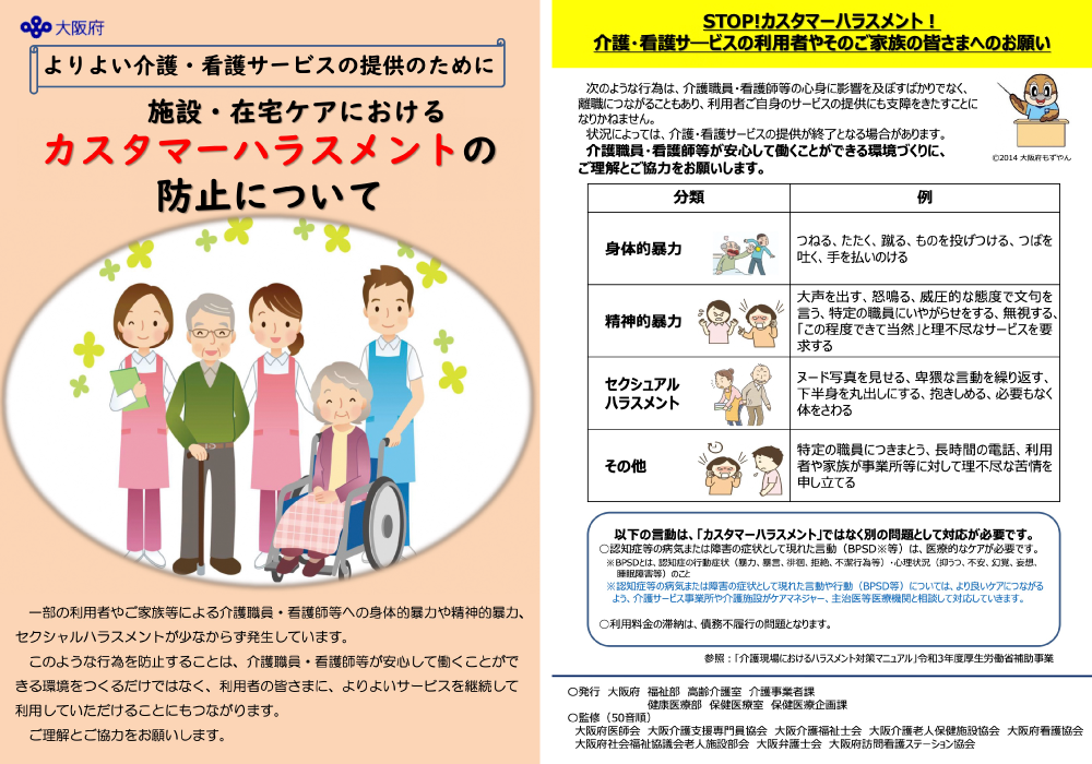 ※認知症等の病気または障害の症状として現れた言動(BPSD等)や介護拒否による抵抗等についてはカスタマーハラスメントと分けて捉えております。