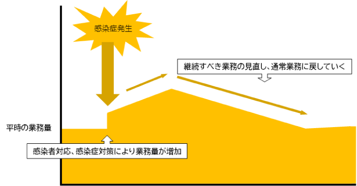 - ● 休止業務:止めても問題のない業務(レクリエーションなど)