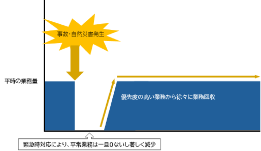 - ● 追加業務:復旧に向けてやるべき業務(非常用電源の用意や応援者の手配など)