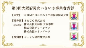 【ご報告】大阪府男女いきいき事業者表彰 『優秀賞』受賞