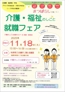 令和7年11月18日(月)、松原商工会議所にて開催される「第3回まつばらし介護・福祉サービス情報フェア」(ハローワーク藤井寺協力「介護・福祉のしごと就職フェア ~介護のしごと応援セミナー&相談・面接会~」)に、当社ブースを出展いたします。