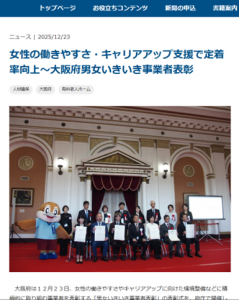 大阪府男女いきいき事業者表彰『優秀賞』受賞がシルバー産業新聞に掲載されました