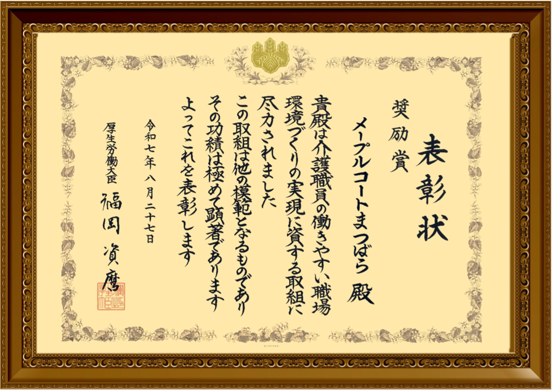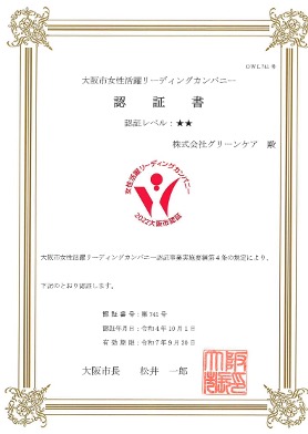 当社で働いて本当に良かったと思える経営体制、職場環境、ワークライフバランスの充実をとことん追求し、安心感と誇りをもって介護に取り組むことができるよう、会社とすべての従業員にこの考えを周知共有し、皆さまの幸せの実現に向けて取り組んで参る所存でございます。