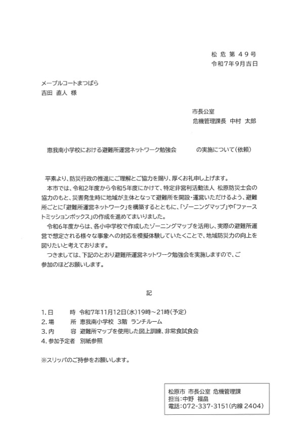 ● 非常災害時の対応手順、役割分担等について定められたマニュアル